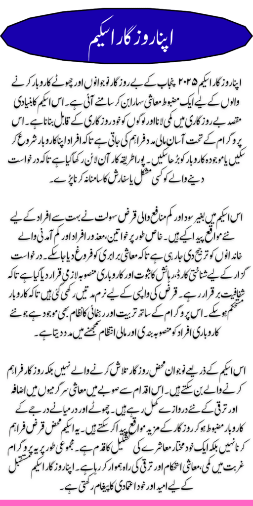 The Apna Rozgar Scheme 2025 has been introduced as a powerful initiative to support unemployed youth and small business owners across Punjab. In a time where job opportunities remain limited and inflation continues to rise, self-employment has become one of the most practical solutions. This scheme provides a financial pathway for individuals who want to start or expand their own businesses but lack the capital to do so.