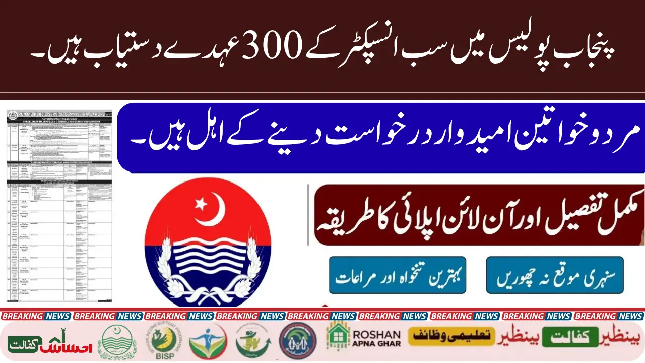 Candidates can submit applications via the official PPSC website. The minimum eligibility is a graduation degree in any field from a recognized university. Key Advertisement Details: Posts: Sub Inspector (BPS-14), Total Vacancies: 300, Eligibility: Male & Female candidates with Punjab domicile, Application Mode: Online.