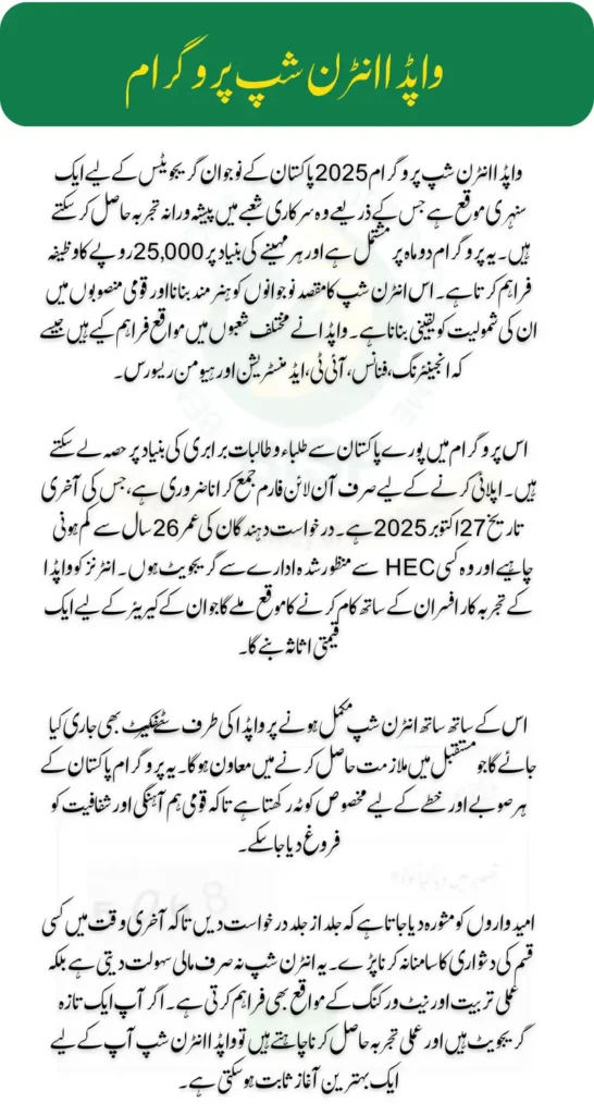 The WAPDA Internship Program 2025 is a rare and valuable opportunity for fresh graduates across Pakistan. With a competitive stipend, structured training, and a transparent selection process, this internship offers everything a young professional needs to enter the job market with confidence. Make sure to apply online before 27 October 2025, and don’t miss the chance to work with one of Pakistan’s leading public sector organizations.